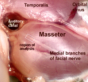 A: Regional anatomy of the murine facial nerve with region of analysis shown.
