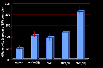 Spinal cord (C3-C7) segments were dissected and assayed for GPx activity in 9-week-old wobbler mice.